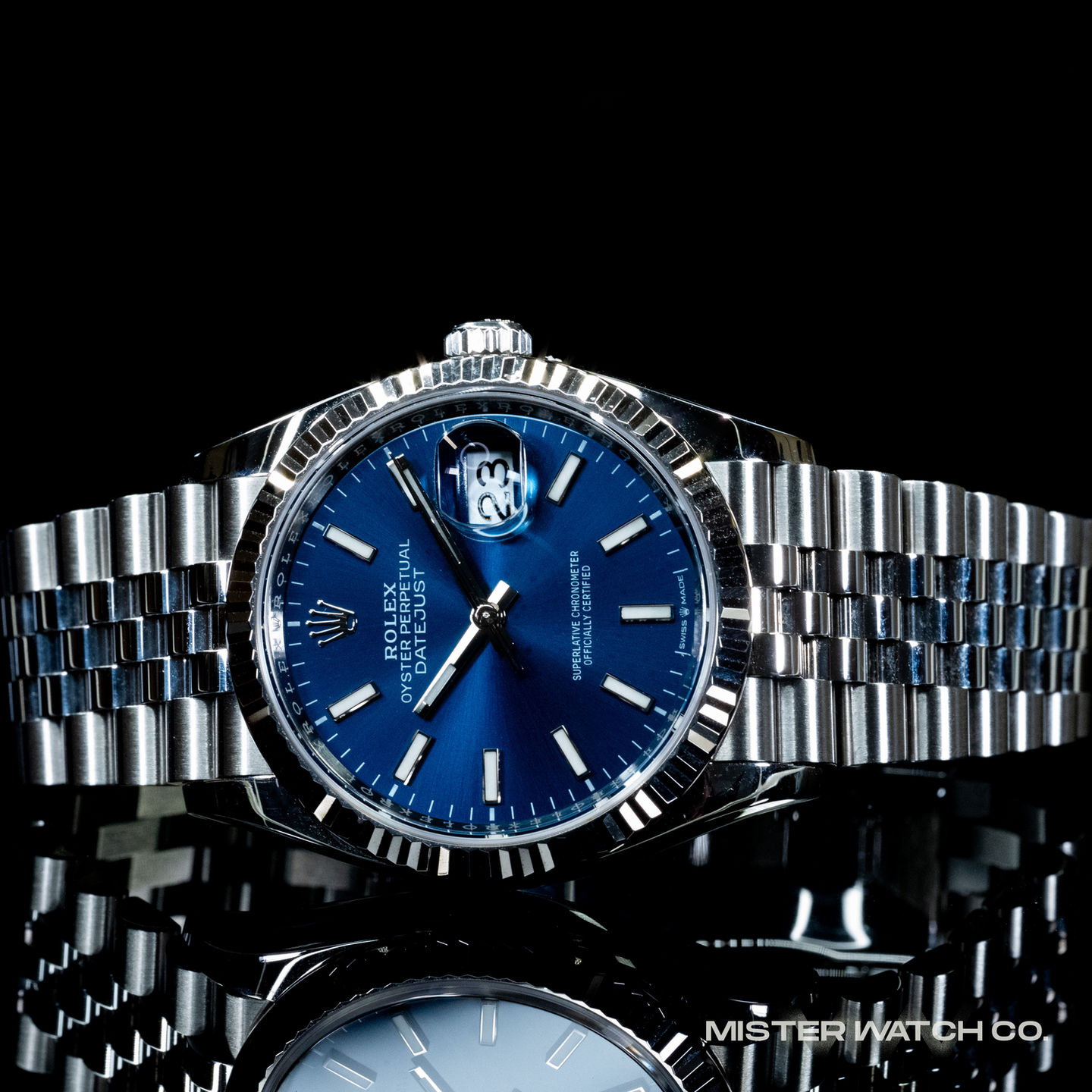 The first Datejust was released in 1945 to celebrate the 40th anniversary of the Rolex corporation. Since its release the Datejust model has become a Rolex classic, being it was the very first automatic wristwatch with an automatically changing date window. With this beautiful watch on your wrist, it’s easy to see why the bright blue dial is so highly sought after amongst collectors. This Rolex configuration combines elegant casual perfectly.